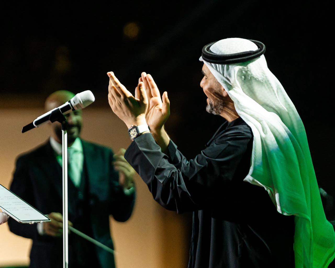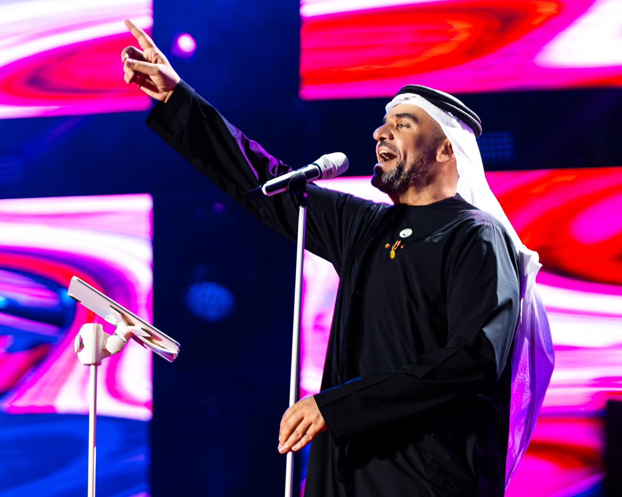وقدّم الجسمي واحدة من أبرز مفاجآت الأمسية بغنائه الأغنية المغربية التراثية “هَيّا هَيّا.. جايه تصفار وتخضار”، وسط تفاعل جماهيري لافت، حيث ردّد الحضور كلماتها بحماس كبير، ما حوّل المكان إلى احتفالية مغربية خليجية نابضة بالطرب والفرح.